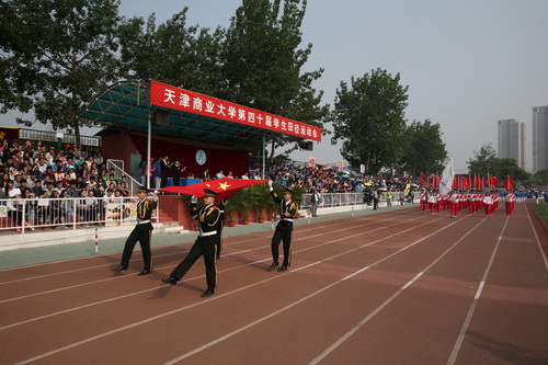 粉刷一新的学校运动场彩旗飘扬,伴随着运动员进行曲,各学院代表方队在国旗护卫队的引导下,迈着坚实的步伐,依次通过主席台接受检阅。体操表演、太极拳表演为开幕式增添了亮丽风景。
