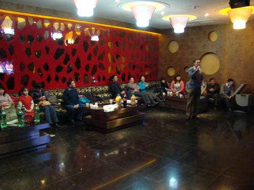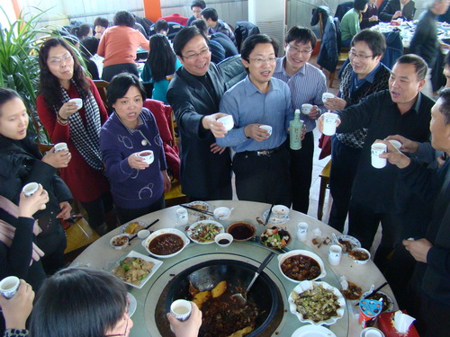 大家来到位于庄园内的御河鱼府共进午餐。席间,信息工程学院党委书记刘振航发表了热情洋溢的祝酒词,祝福大家在 2011 兔年,跳跃发展,身体健康,事业有成,顺心顺意!