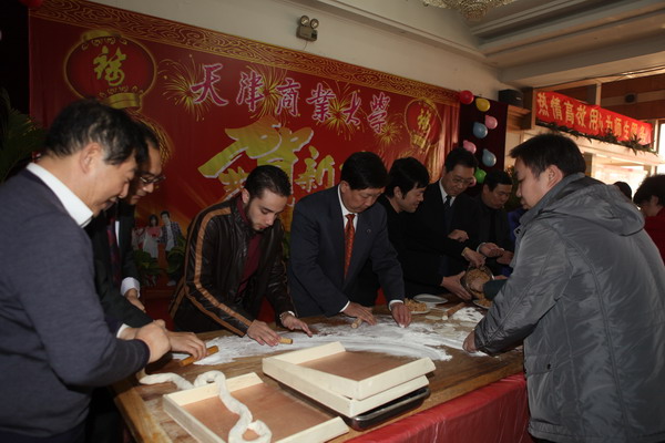 校领导与未回家过年的学生一起包团圆饺子