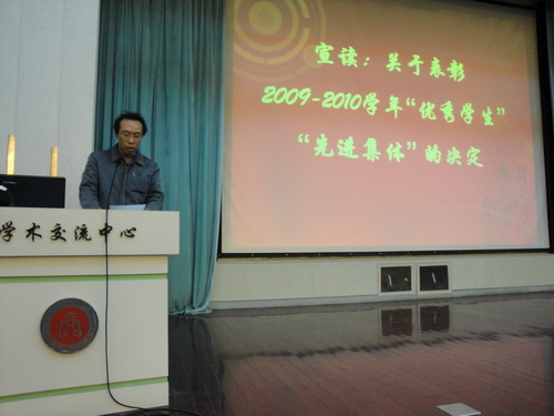 大会最后,院长张坤生教授讲话。他分析了当前学院在人才培养工作中的的形势和任务,指出随着国家中长期教育改革和发展规划纲要的颁布,树立以提高质量为核心的教育发展观,把促进人的全面发展、适应社会需要作为衡量教育质量的根本标准。学院要注重内涵发展,办出特色、办出水平,出名师,育英才。我院今年申报成功两个一级学科硕士点,明年将会扩大招生硕士生的规模。他希望同学们充分利用学校资源加强学习能力、科研能力和就业能力的培养,强调参加科研工作是训练科学素养、服务社会、实现个人价值的最佳途径。张院长的讲话使大家精神振奋,同学们纷纷表示要努力学习,深入实践科学发展观,立足本岗,创先争优,力争创造更大的成绩。