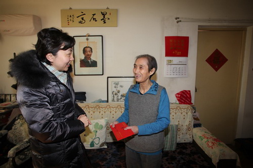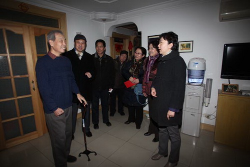 1月7日 ,由校党委副书记、工会主席史习红带队,校工会、人事处、老干部工作部等有关部门负责人组成的慰问组,专程前往10余户病困在职及退休教职工家中慰问探望,为他们带去了学校党政工领导和全校教职工的亲切关怀和新春祝福。史书记一行每到一处,都与教职工亲切交谈,详细了解他们的病情、治疗情况和家庭状况。鼓励他们树立信心,克服困难,专心治疗,早日康复,并把慰问品和慰问金送到病困教职工及家属的手中。