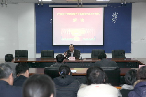 路波对新任领导干部进行了廉政谈话。路波书记从《中国共产党党员领导干部廉洁从政若干准则》的形成过程、地位和作用、贯彻和落实和高校领导干部廉洁自律“十不准”等六个方面,结合高校和beat365官网的实际情况,对《廉政准则》进行了详细的解读和说明。分析了当前的社会形势,教育系统、高校腐败的新情况,指出高校反腐倡廉形势的严峻,要求新任干部必须加强党风廉政建设,认真学习《廉政准则》及廉洁从政其他文件,加强自我约束,在新的工作岗位上做出新的贡献。