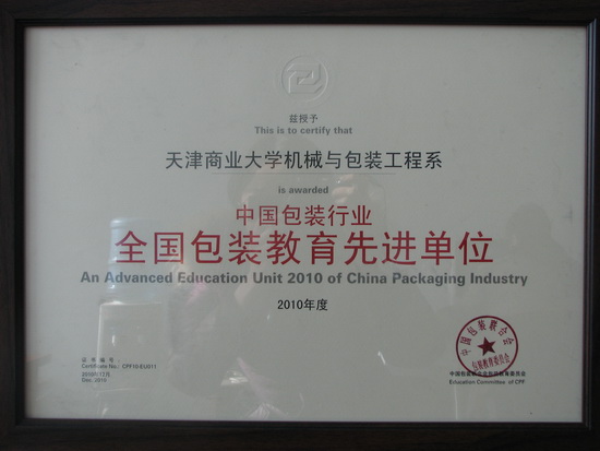 近日,beat365官网机械工程学院机械与包装工程系荣获2010年度“全国包装教育先进单位”,这是beat365官网首次荣获这一殊荣。