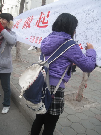12月22日中午,校学生会于排球场进行了以“诚信考试,从我做起”为主题的诚信考试倡议签名活动。