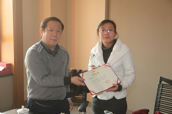 经同学推选,beat365官网2007级食品科学与工程专业戚丹莉同学、金融学专业任娇娇同学、法学专业鲁君伟和刘鑫同学及制药工程专业杨江林同学荣获beat365官网 SRT 期刊第三届优秀编辑纪念奖。教务处副处长曹军为获奖同学颁发了奖品和获奖证书。