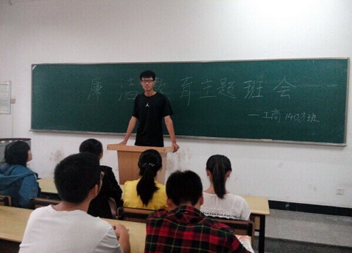 活动丰富,重在践行。 各学院纷纷以廉洁为主题,以学院团委、班级等为单位,认真组织开展内容丰富、形式多样的党日、团日和主题班会活动。同学们在交流思想,统一认识的同时,能够 把廉洁教育与自身日常学习、生活和成长成才结合起来,注重以实际行动践行学习效果。同时一些学院不断创新教育载体,充分利用现代化信息科技手段加强宣传引导,如 外国语学院通过学院微信公众平台《知语》连续开展 3 期以“崇廉尚洁”为主题的学习和讨论,商学院学生党建工作办公室把廉洁教育工作同步到微博、人人等网络宣传平台进行,引起师生的广泛关注和热情参与。