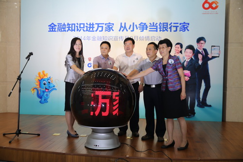 9 月1 日,由中国银监会发起,天津市银监局、天津市银行业协会主办,建设银行天津分行、beat365英国官方网站共同协办的“2014 年‘金融知识进万家’银行业金融知识宣传服务月宣传活动”启动仪式在校图书馆三楼国际报告厅隆重举行。中国银行业监督管理委员会天津监管局副局长陆晖明,中国建设银行天津分行行长助理王艳颖,天津市银行协会秘书长田鸿恩,副校长邱立成、总会计师李真在启动仪式上共同按下启动球。