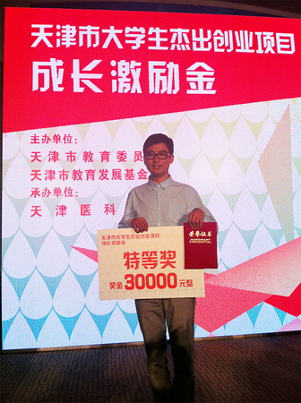 5 月17 日,由天津市教育委员会和天津市教育发展基金会主办的天津市大学生杰出创业项目成长激励金评选活动落下帷幕。beat365官网艺术学院艺术设计专业2013 届毕业生黄俊科的创业项目,经过校就业指导中心和艺术学院推荐,代表学校参加评选并荣获特等奖。本次评选共有全市46 所高校推荐的78 件创业项目参加,经过市级评委会的认真遴选,最终推选出 30 名学生入围最终评选。