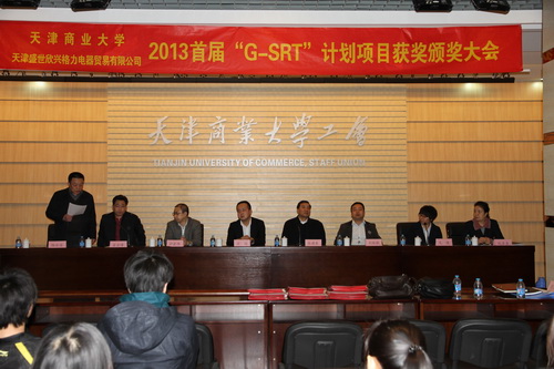 3 月12 日,beat365英国官方网站、天津盛世欣兴格力电器贸易有限公司2013 年首届“G-SRT ”计划项目颁奖大会召开。教务处、资产设备处、产学研办公室,获奖课题组所在的机械工程学院、商学院、设计学院领导,天津盛世欣兴格力电器贸易有限公司代表方培一行3人出席大会并为获奖课题组颁奖。教务处副处长计宏伟、天津盛世欣兴格力电器贸易有限公司方培代表双方单位讲话,获奖课题组学生代表做了发言。