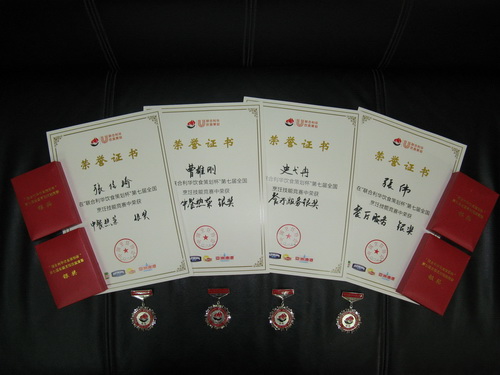近日,由中国烹饪协会、中国商业联合会、团中央城市青年工作部等五部门主办的“联合利华饮食策划杯”第七届全国烹饪技能竞赛(天津赛区)暨2013 年天津市烹饪技能竞赛落下帷幕。商学院酒店管理专业在学校设备处和教务处的大力支持下,经过精心选拔、刻苦训练、充分准备,作为唯一一支大学生代表队,面对180多名来自知名餐饮企业和四星级以上酒店的专业选手,全部选手获得银奖的好成绩。
