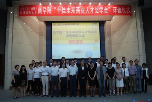 6 月 8 日,商学院“十佳未来商业人才奖学金”评选表彰会在图书馆国际报告厅举行,天津之星(梅赛德斯- 奔驰)汽车服务有限公司 ( 简称天津之星公司 ) 总经理张弢先生、人事部经理夏文静女士,市教委学生处何飞老师等嘉宾出席。会前,校纪委书记路波会见张弢总经理一行。商学院党委书记李新锁、校学生处副处长孟国栋、商学院党委副书记翟云锋出席评审表彰会。