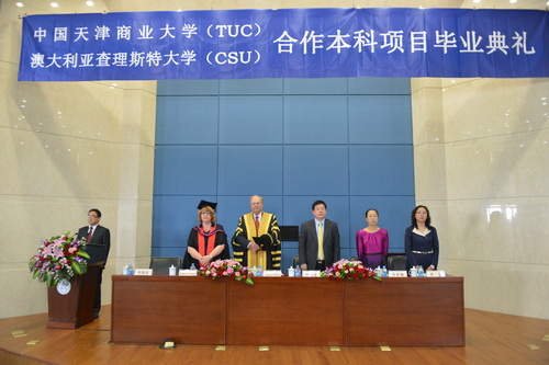 澳大利亚查理· 斯特大学校长Lawrence Willett在致辞中表达了对2013 届毕业生的美好祝愿,希望两校的合作办学关系更加紧密。副校长邱立成在讲话中向远道而来的客人和学生家长表示欢迎,并向获得澳方商务研究学士学位的同学们表示祝贺,同时鼓励大家抓住机遇,立志图强,并希望同学们心系师生情谊,关心母校发展。