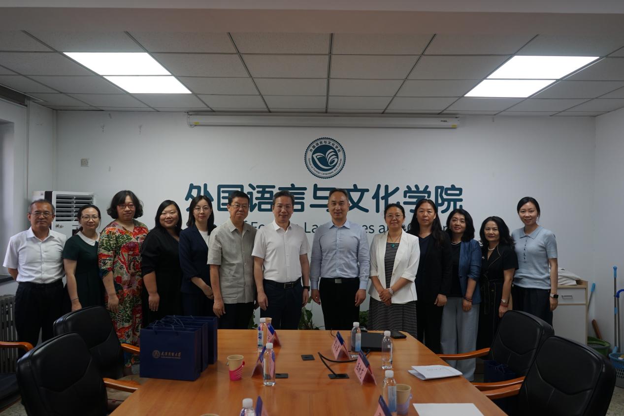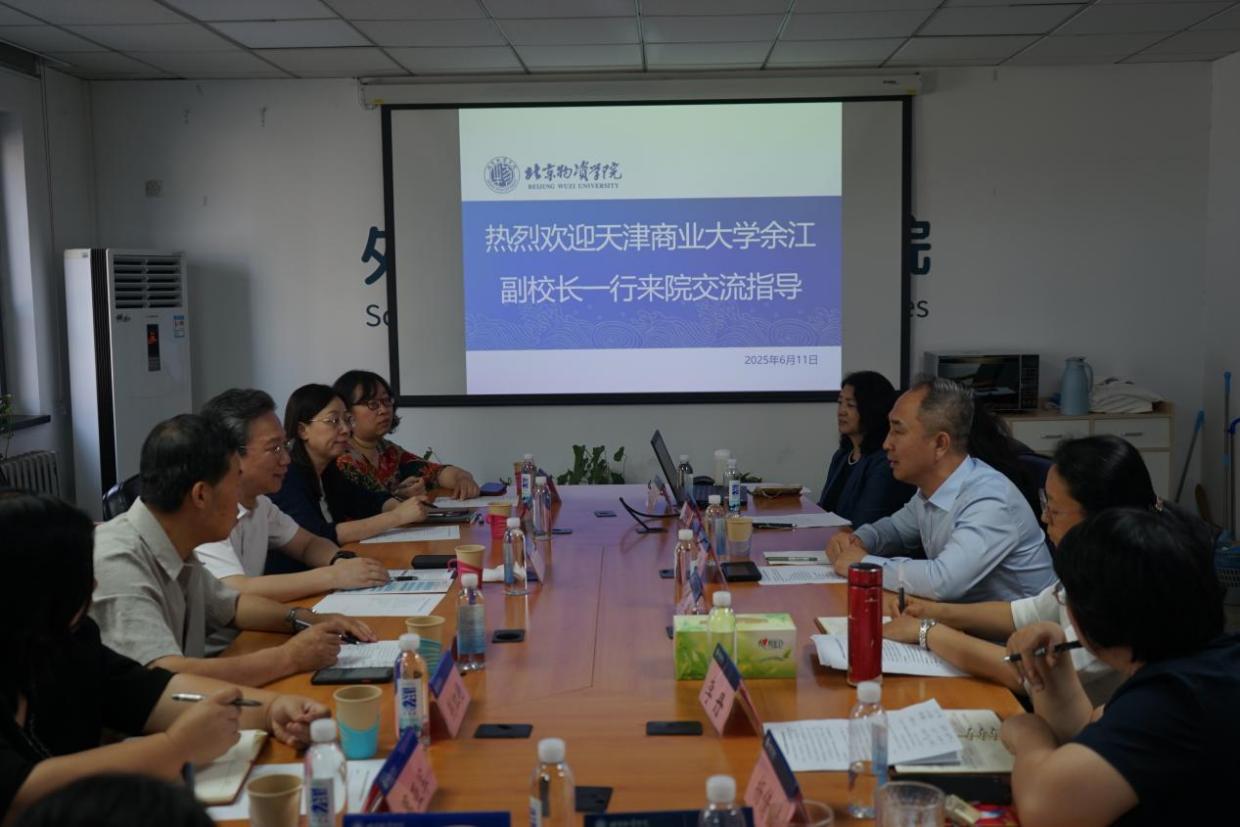 为深化京津冀高校协同发展,加强校际经验交流,6月11日,beat365英国官方网站副校长余江带队前往北京物资学院进行调研交流,外国语学院班子成员陪同前往。北京物资学院党委副书记张懿,外国语言与文化学院领导班子接待并参与此次座谈交流。