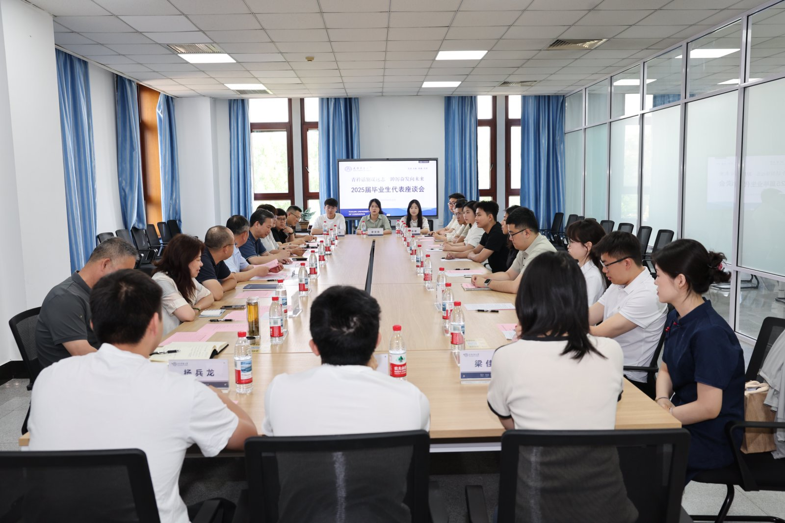 座谈会上,毕业生们踊跃发言,分享了各自在天商的学习生活体会,表达了对母校的感恩之情,展望了对未来学习工作的规划。同时结合自身学习和生活经历,畅谈对学校未来发展的建议,围绕课程设置、学术文化、就业指导、校园建设等方面提出了具有建设性的意见和建议。校领导和相关部门负责同志认真倾听并就提出的问题进行回复,表示将重点推进人才培养体系的结构性优化,持续深化教育教学改革,全面提升管理服务效能,着力建设更优质的育人环境,为在校学生成长成才提供全方位保障。会后,校领导向与会毕业生赠送纪念礼物并合影留念。(审稿:马静)