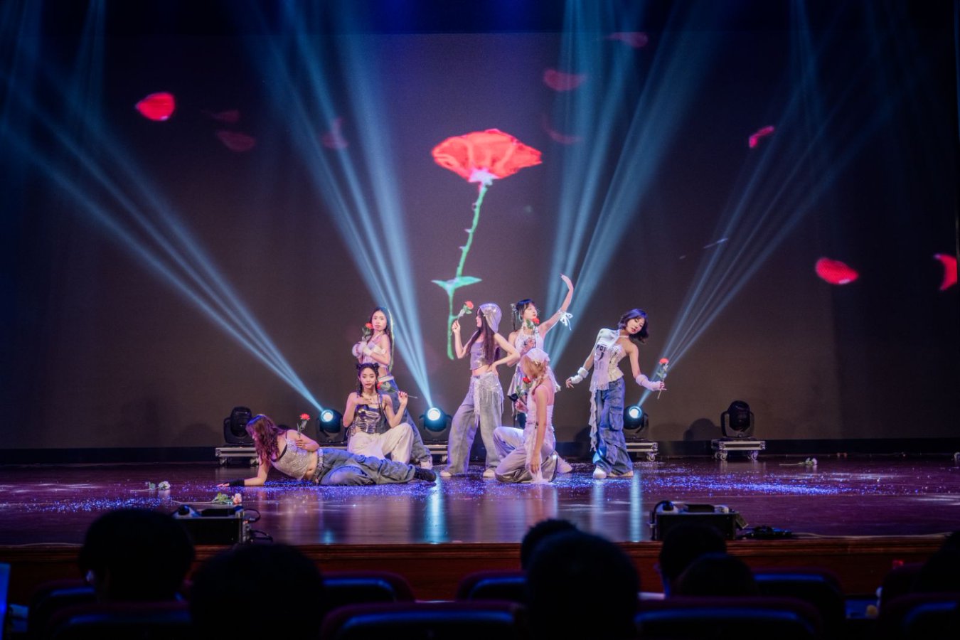晚会以一首摇滚风格的歌曲《鲜花》热力开场,为毕业晚会拉开“不被定义的青春序章”。第一篇章“初相遇·你好天商”:歌曲《亲爱的你啊》用温柔声线治愈心灵,唤醒青春记忆;音乐情景剧《那些年》用歌声结合表演,生动演绎了天商校园里那些难忘的故事和瞬间;舞蹈串烧《Girlfriends》《Is this love》以动感节奏激活气氛,传递天商青春能量;歌曲《无条件》《最佳损友》用动人旋律歌唱了校园友情的永恒与美好;相声《毕业快乐》中演员带来了精彩的原创快板表演,在一捧一逗中分享在商大的欢乐故事。