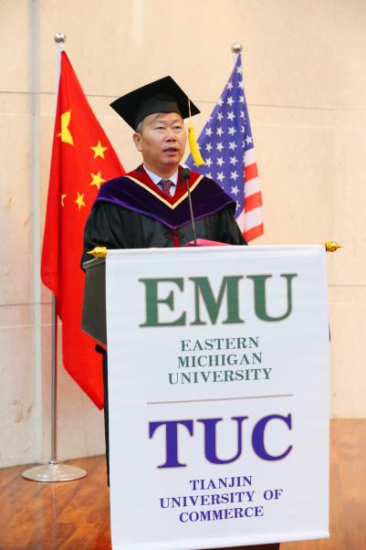 陈冠益在致辞中向圆满完成学业的毕业生表示祝贺,向辛勤敬业的中外教职工致敬,向默默付出的同学们的家人表示感谢的同时,对该合作项目给予了充分的肯定和高度的评价。他指出项目始终秉持“融汇中西、知行合一”的理念,通过20年对中国高等教育国际化道路的坚定实践,为京津冀乃至全国输送了大批精通国际规则、扎根中国实践的人力资源管理精英。最后,期待同学们牢记习近平总书记的殷切嘱托,在追逐梦想的道路上始终胸怀“祖国利益高于一切”的信念,以“小我”成就“大我”让人生在“国之大者”中绽放光芒。