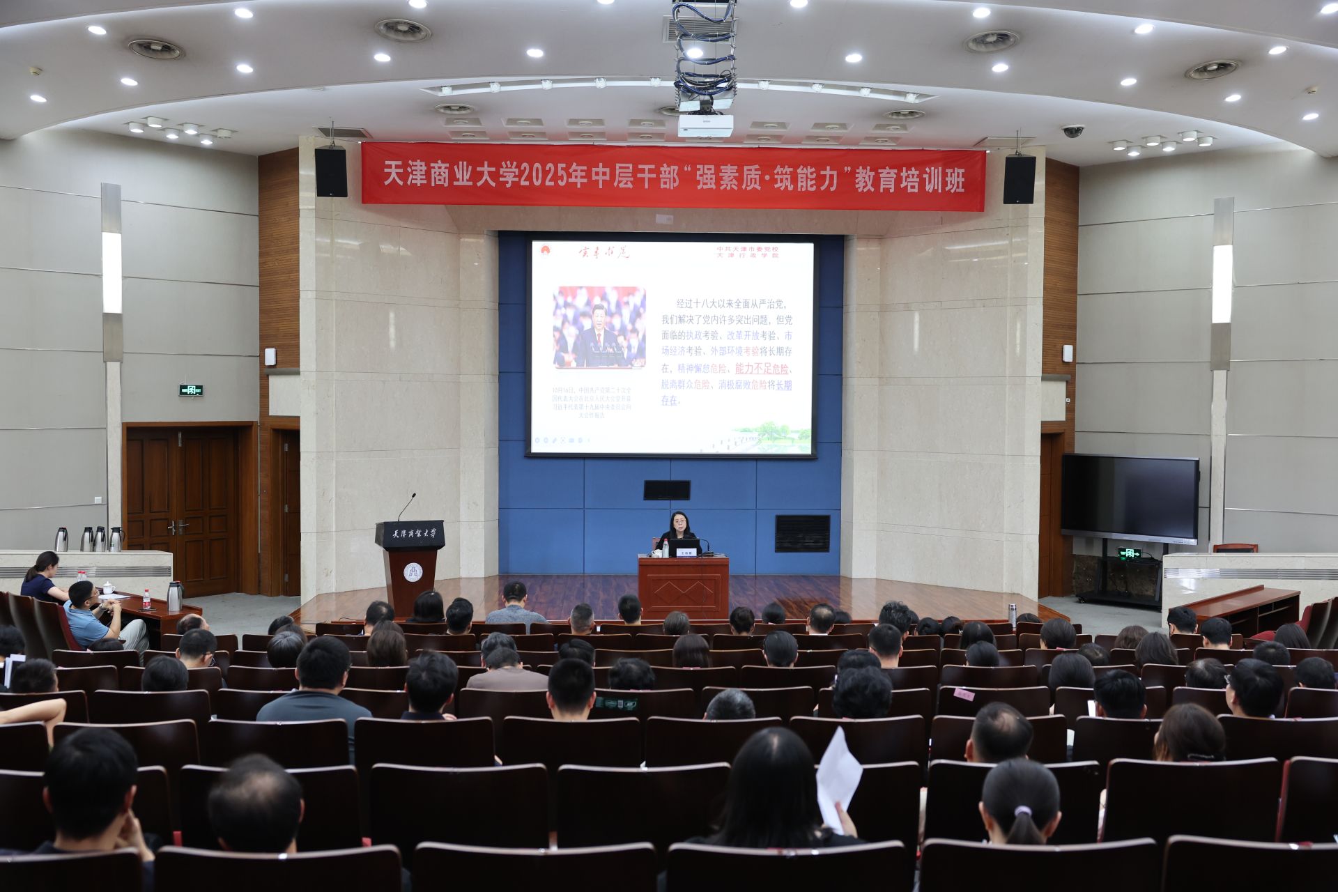 市纪委监委党风政风监督室、市委网信办、天津市民族宗教委宗教二处相关负责同志、市委党校公管教研部原主任王晓霞、天津大学发展规划处(学科建设办公室)处长杜青、山东大学工程训练中心副主任姜兆亮、对外经济贸易大学教育与开放经济研究中心教授王云海、天津科技大学教学质量监控与评估中心主任王怡分别围绕落实中央八项规定精神、网络舆情服务保障工作的实践与思考、抵御和防范宗教向校园渗透、中层干部领导力提升、学科建设的探索与实践、智能时代人才培养的探索与实践、深化商科教育教学改革、新商科高校教师队伍治理现代等主题做了专题辅导报告。培训期间,学校组织中层干部赴天津市警示教育中心开展现场教学。