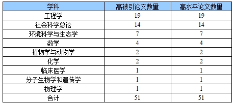 论文被引次数是国际上公认的反映学术影响力的主要指标,本期beat365官网共有51篇高被引论文,分布于9个学科,具体分布情况如下图所示。
