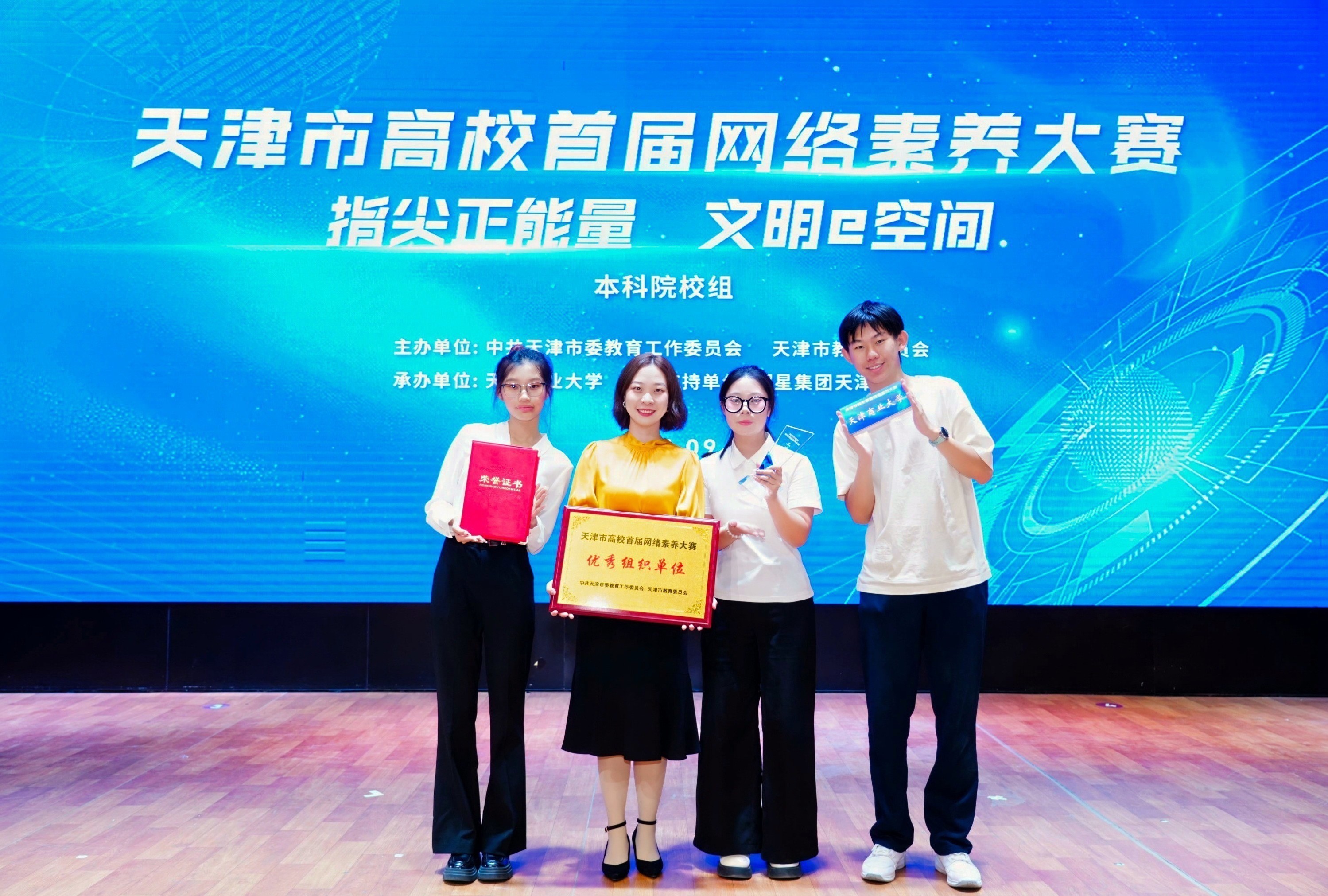 9月20日至21日,由中共天津市委教育工作委员会、天津市教育委员会主办的天津市首届网络素养大赛在天津工业大学举办,来自全市多所高校同台竞技,beat365官网选派的机械工程学院辅导员高梦雪,学生赵秀敏、王思涵、张诗茹组成的团队荣获二等奖,学校被评为“优秀组织单位”,同时beat365官网防诈反诈作品被天津新闻宣传报道。