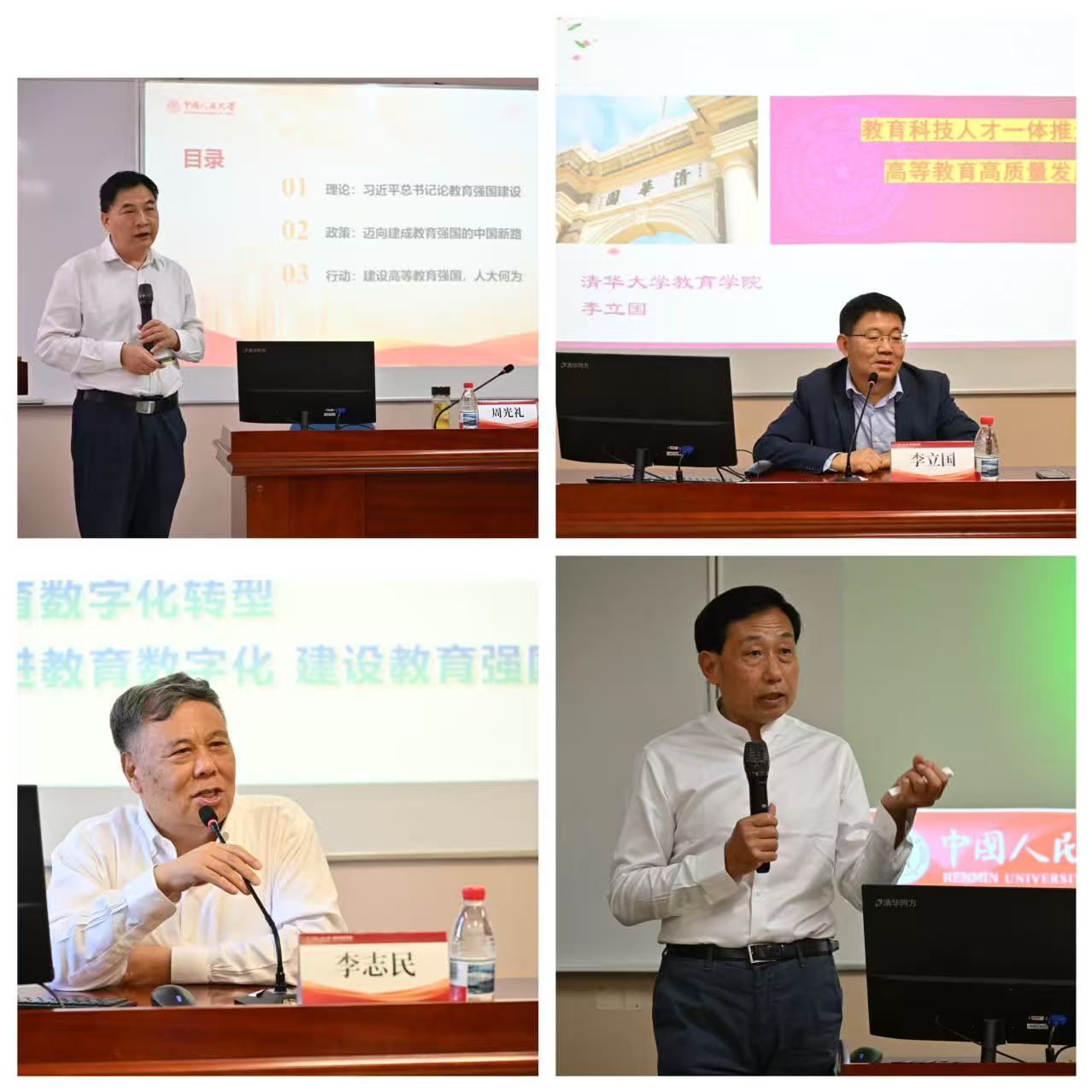 专题授课环节,邀请中国人民大学教育学院院长、评价研究中心主任、吴玉章讲席教授周光礼作“教育强国规划纲要解读”主题讲座;邀请清华大学教育学院教授、教育部-清华大学教育战略决策与国家规划研究中心主任李立国作“教育科技人才一体与高等教育高质量发展”主题讲座;邀请中国教育发展战略学会副会长兼人才发展专业委员会理事长,清华大学、国家教育行政学院兼职教授李志民作“人工智能与教育交融--AI时代高等教育教学的崛起与挑战”主题讲座;邀请国家高级心理咨询师,北京大学、清华大学高级培训课程特聘教授孙健升作“阳光心态与压力管理”主题讲座。