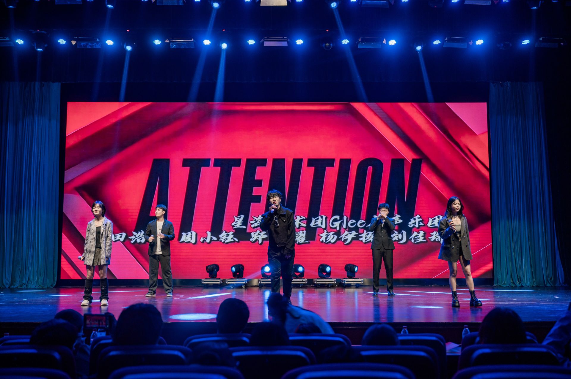 无伴奏人声《Attention》唱出了纯粹人声的和谐之美,严谨的韵律、密切的配合,如同新生经历军训磨合后达成的默契,预示着团结协作的无限可能。