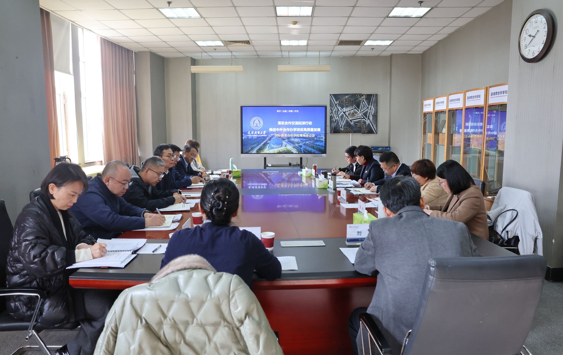 会上,国际教育合作学院主要负责同志汇报了学院工作情况,就中美合作酒店管理项目落地实施推进情况进行了重点汇报。