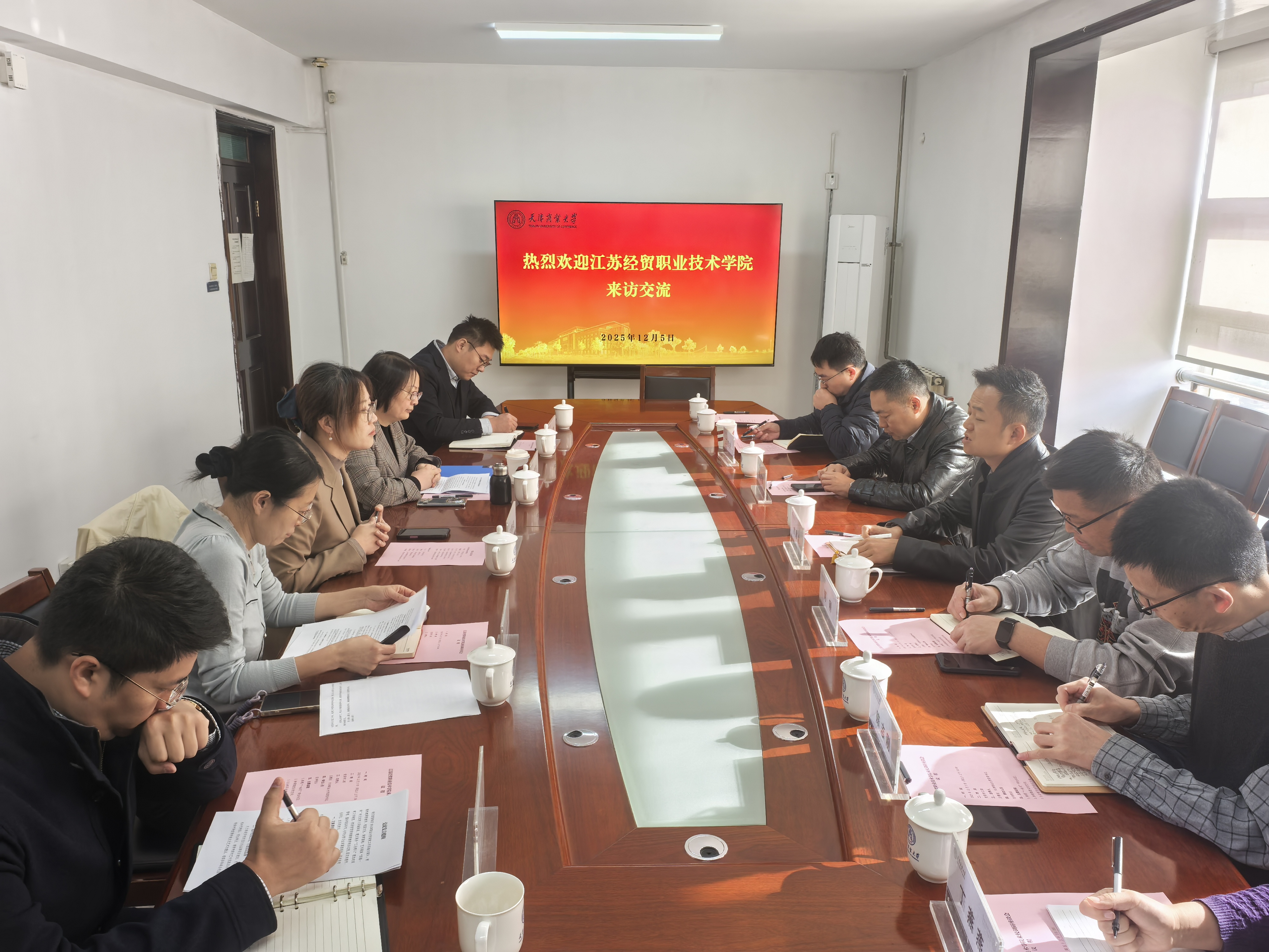 12月5日,江苏经贸职业技术学院一行六人到访beat365官网开展校际座谈交流。会前,校党委副书记王立云会见了付建龙副校长一行,并陪同参观了“一站式”学生社区和微渡众创空间。beat365官网党委学工部、团委、公共管理学院相关负责同志参加座谈交流。