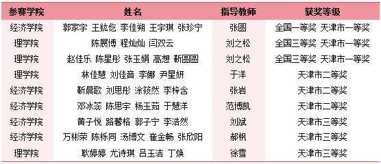 学校高度重视本项赛事的组织与选拔工作,积极组织学生参加校内选拔赛和天津市分赛区竞赛。来自经济学院和理学院相关专业的学生踊跃参与、积极备赛。经济学院、理学院教师全程跟进、耐心指导,在方案设计、数据处理、模型构建和成果完善等方面提供了有力支持,为参赛团队取得优异成绩奠定了坚实基础。