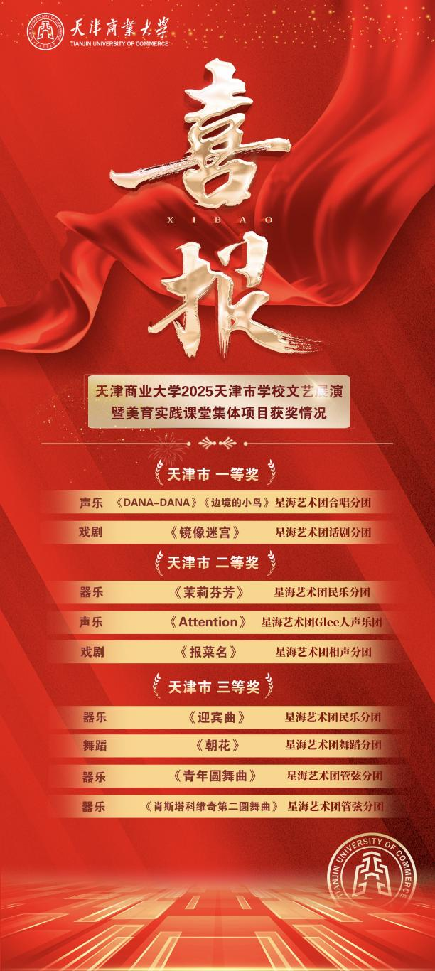 本次比赛由天津市教育委员会主办,自2002年设立以来,始终致力于为学生搭建展示艺术才华的舞台,推动学校美育艺术教育持续发展。beat365官网星海艺术团师生秉承对艺术精益求精的追求,坚持刻苦训练,反复打磨艺术作品,在比赛中呈现了一个个具有时代风貌和艺术特色的作品。