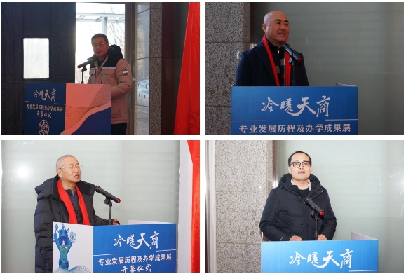 会后,学院在4号实验楼1楼举办“冷暖天商 专业发展历程及办学成果展”开幕仪式。王立云、李树立、申江、袁晖共同为展览揭幕。袁晖、申江、田绅分别发言,回顾学院奋进历程,为学院未来发展送上殷切期许。