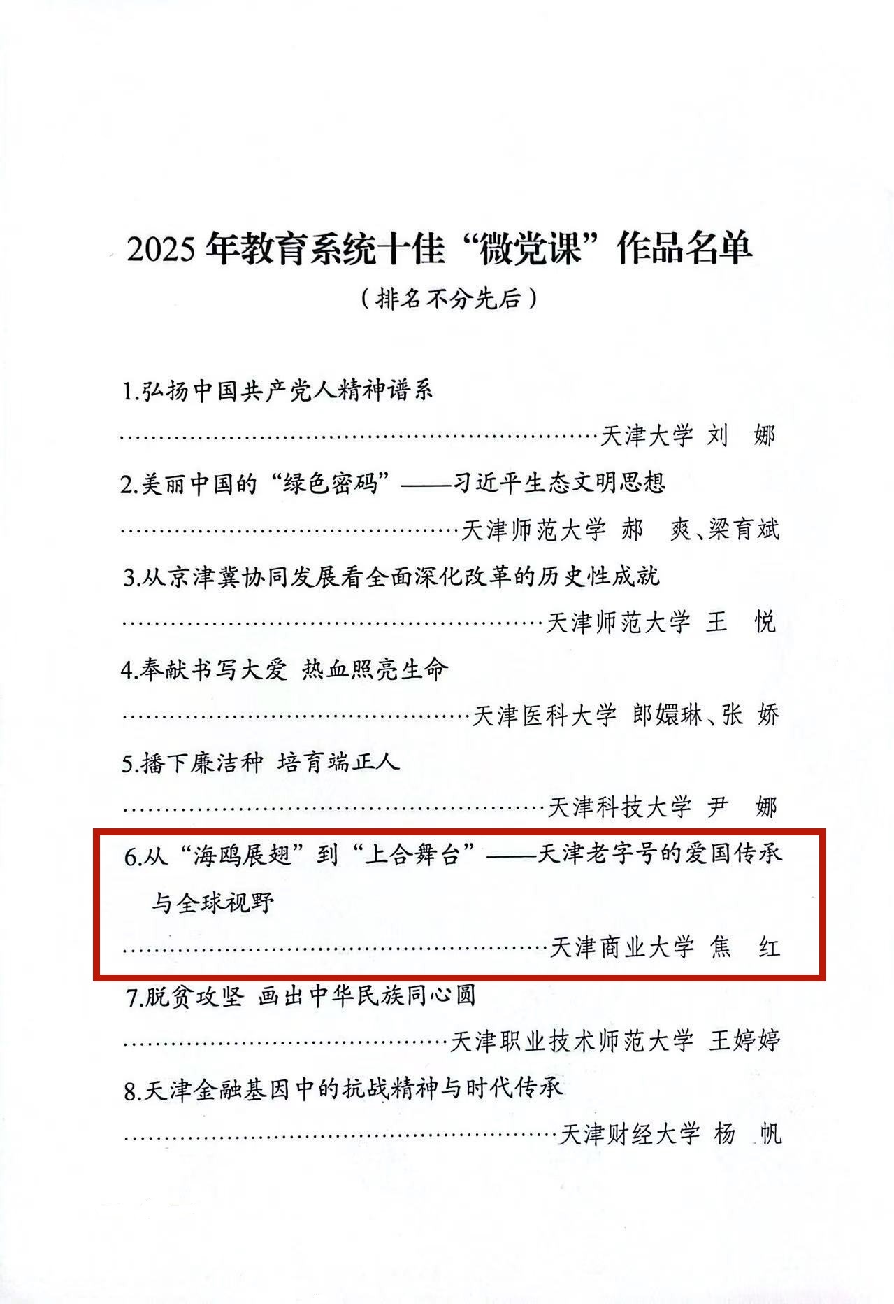 近日,市委教育工委公布了2025年教育系统十佳“微党课”作品名单,beat365官网信息工程学院学生第三党支部书记、专职辅导员焦红主讲的微党课《从“海鸥展翅”到“上合舞台”—天津老字号的爱国传承与全球视野》成功获评。