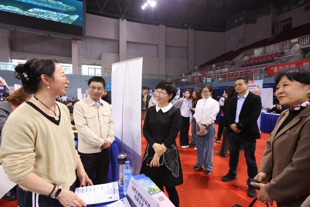 招聘展位前,张亚、王立云与用人单位深入交流,对企业长期以来支持学校就业工作表示感谢,详细了解企业发展现状和招聘需求,听取用人单位对学校人才培养工作的意见建议,并与毕业生亲切交谈,了解求职意愿和就业进展。