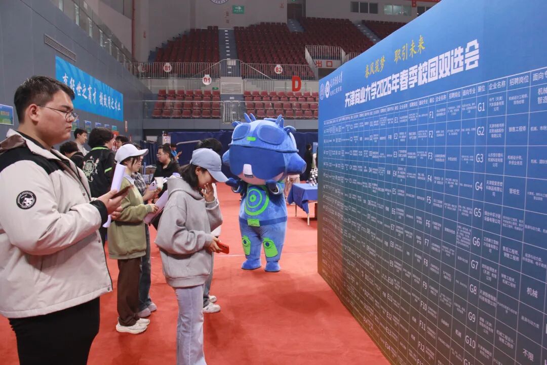 本次双选会共吸引来自北京、天津、山东、上海、江苏、浙江等10余个省市的112家优质企业参会,提供就业岗位1000余个,吸引千余名毕业生到场求职,累计投递简历3000余份。双选会现场设置政策领航・多维指路、求职护航・精准赋能、春招焕新・趣享好礼等功能服务区,为毕业生提供政策咨询、简历优化、面试指导等一站式就业服务。身穿印有学院logoT恤衫的具身智能机器人格外引人注目,吸引毕业生和企业代表纷纷合影留念。集赞兑换的非遗纪念品也给毕业生们留下了难忘的求职体验。